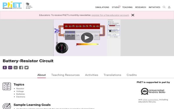 This interactive PhET simulation allows students to build and explore simple battery-resistor circuits virtually. Learners can manipulate battery voltage and resistor values, observing in real-time how these changes affect current and voltage across components. It provides a dynamic environment for understanding Ohm's Law and fundamental circuit principles without the need for physical equipment. Teachers can use this tool to facilitate inquiry-based investigations, reinforce theoretical concepts, and support visual learners in grasping abstract electrical phenomena.