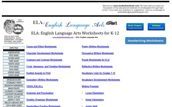 This section of Student Handouts provides a comprehensive collection of free, printable materials designed to support English Language Arts instruction across various grade levels. Educators can find a wide array of worksheets, lesson plans, and activities covering grammar, vocabulary, reading comprehension, and writing skills. These resources are ideal for supplementing existing curriculum, providing extra practice, or serving as assessment tools in a K-12 classroom setting. The platform offers ready-to-use content to enhance literacy development and critical thinking.